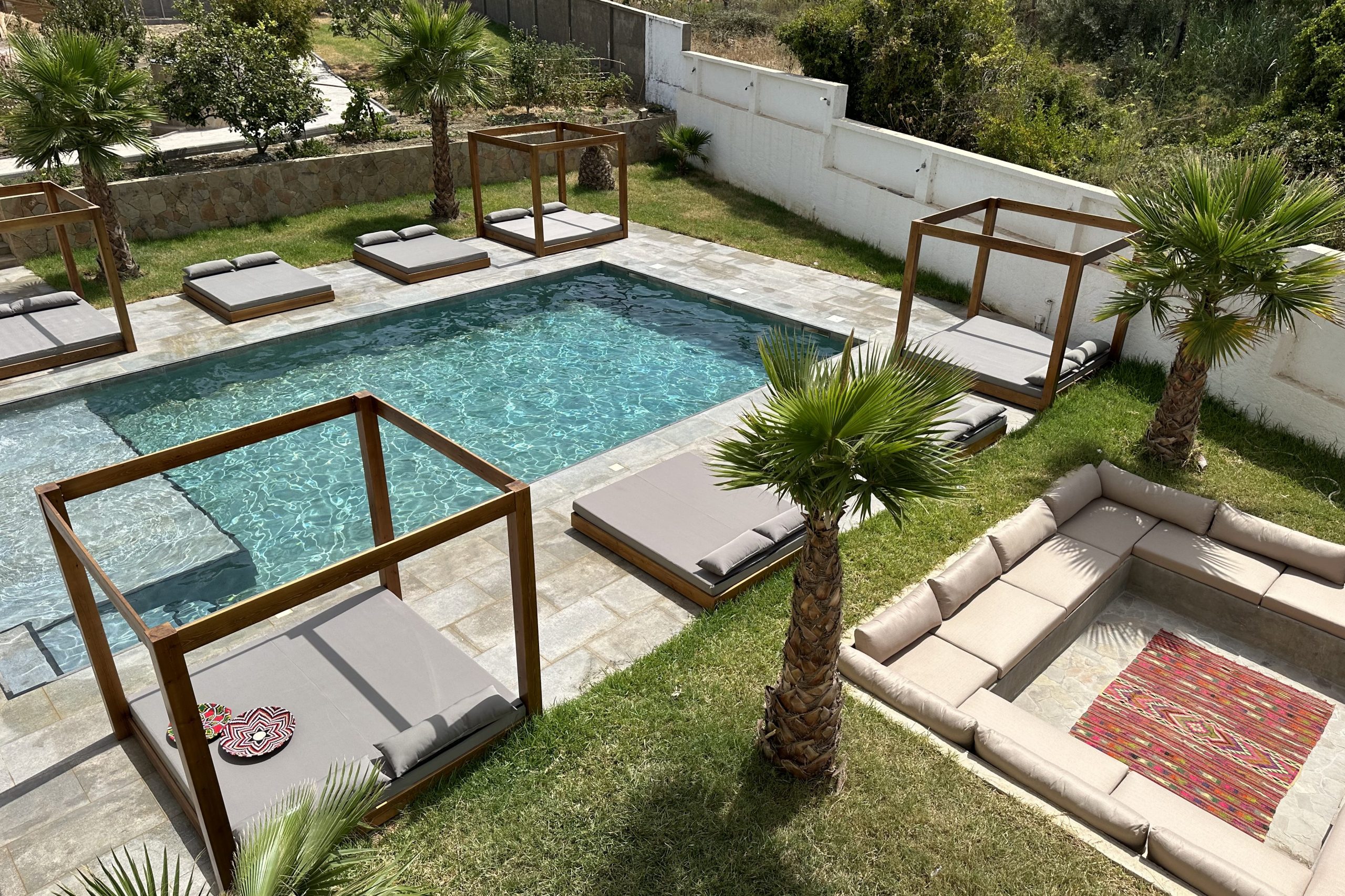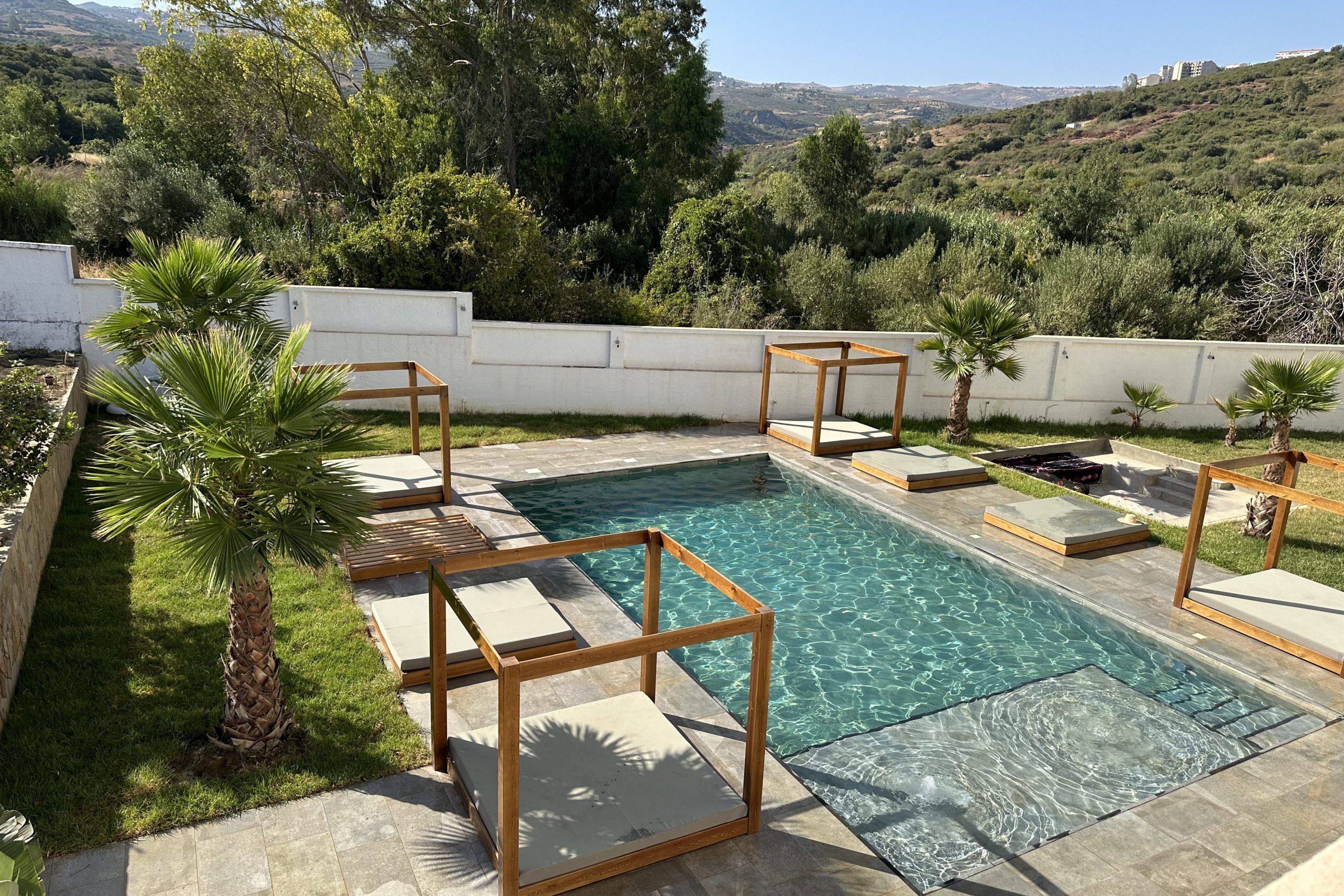 Implantée sur plus de 2500 m² d’extérieur, la villa offre un cadre exceptionnel avec une grande piscine, des terrasses encastrées pour profiter des vues panoramiques, des lits baldaquins propices à la détente et des jardins paysagers soigneusement aménagés.