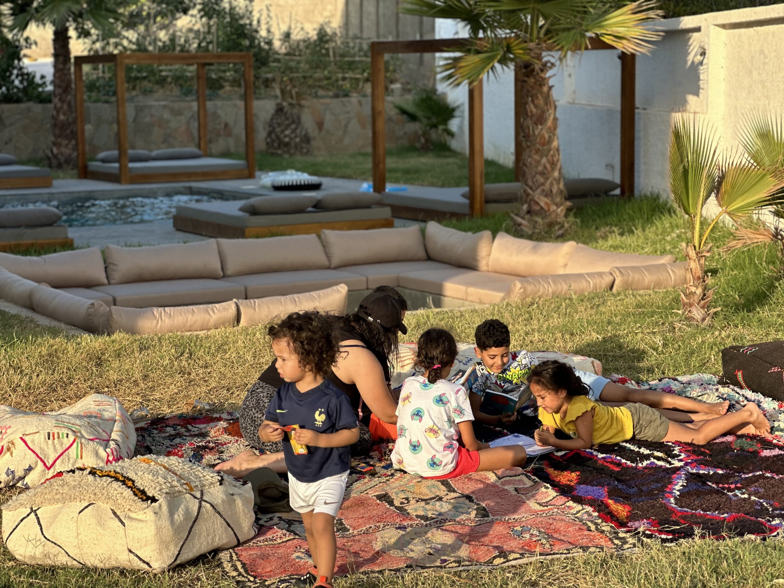 À la Villa Ali, notre équipe d’animation propose une large gamme d’activités adaptées aux enfants, animées par des professionnels qualifiés. Parmi les activités proposées, les plus jeunes pourront s’éveiller à travers des jeux d’éveil et des jeux de société dans une tente berbère, ainsi que participer à des activités sportives comme le football en plein air. Des animations autour de la piscine sont également disponibles pour des moments de détente et de divertissement.